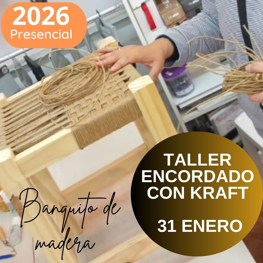 • VENIS Y TEJES UN BANQUITO DE MADERA DE 40 X 40 EN  PINO CON HILO KRAFT