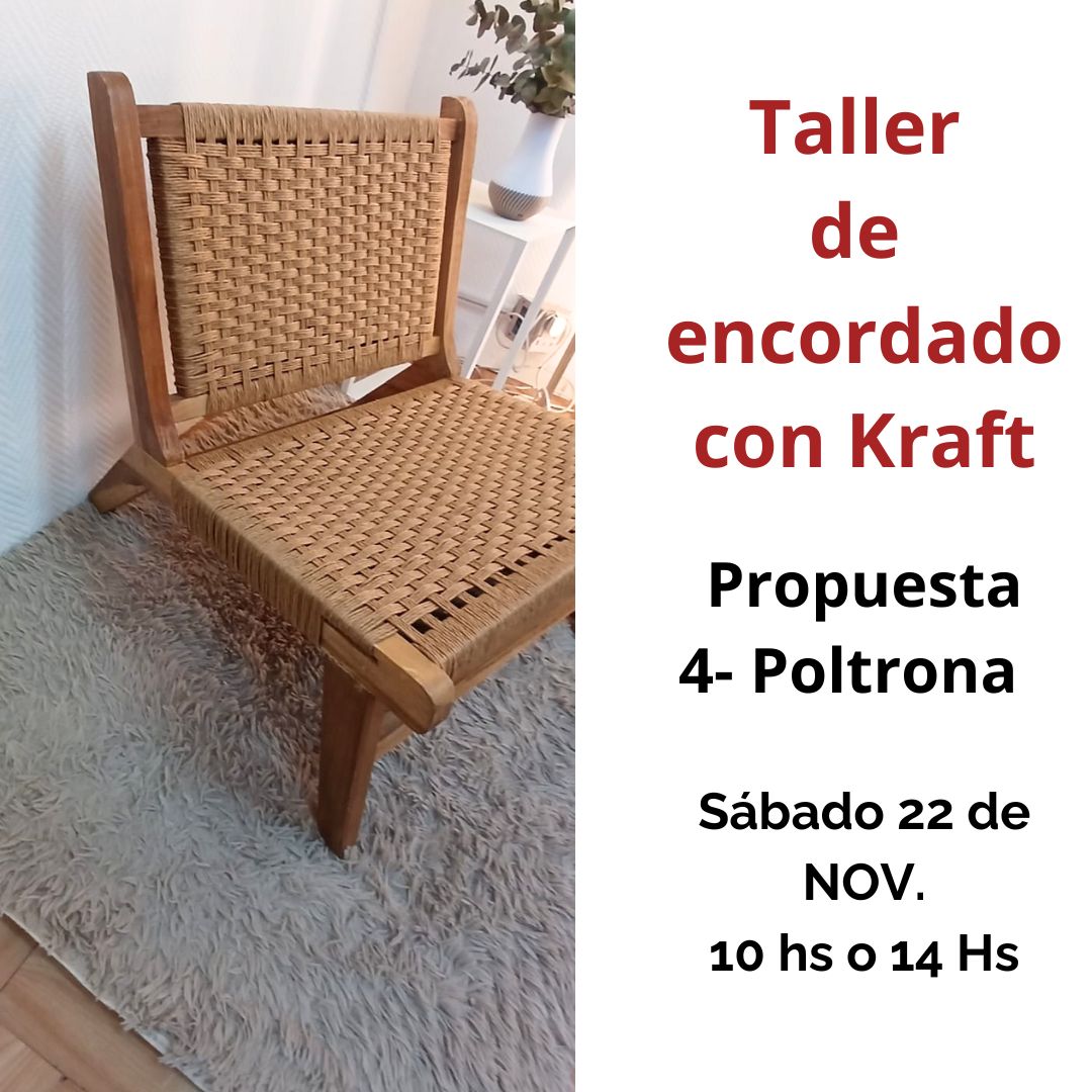 Tejemos una poltrona de madera con kraft y te lo llevas sin terminar pero con todas las instrucciones de como terminarlas, ademas de un grupo de wsp para consultar a la profesora